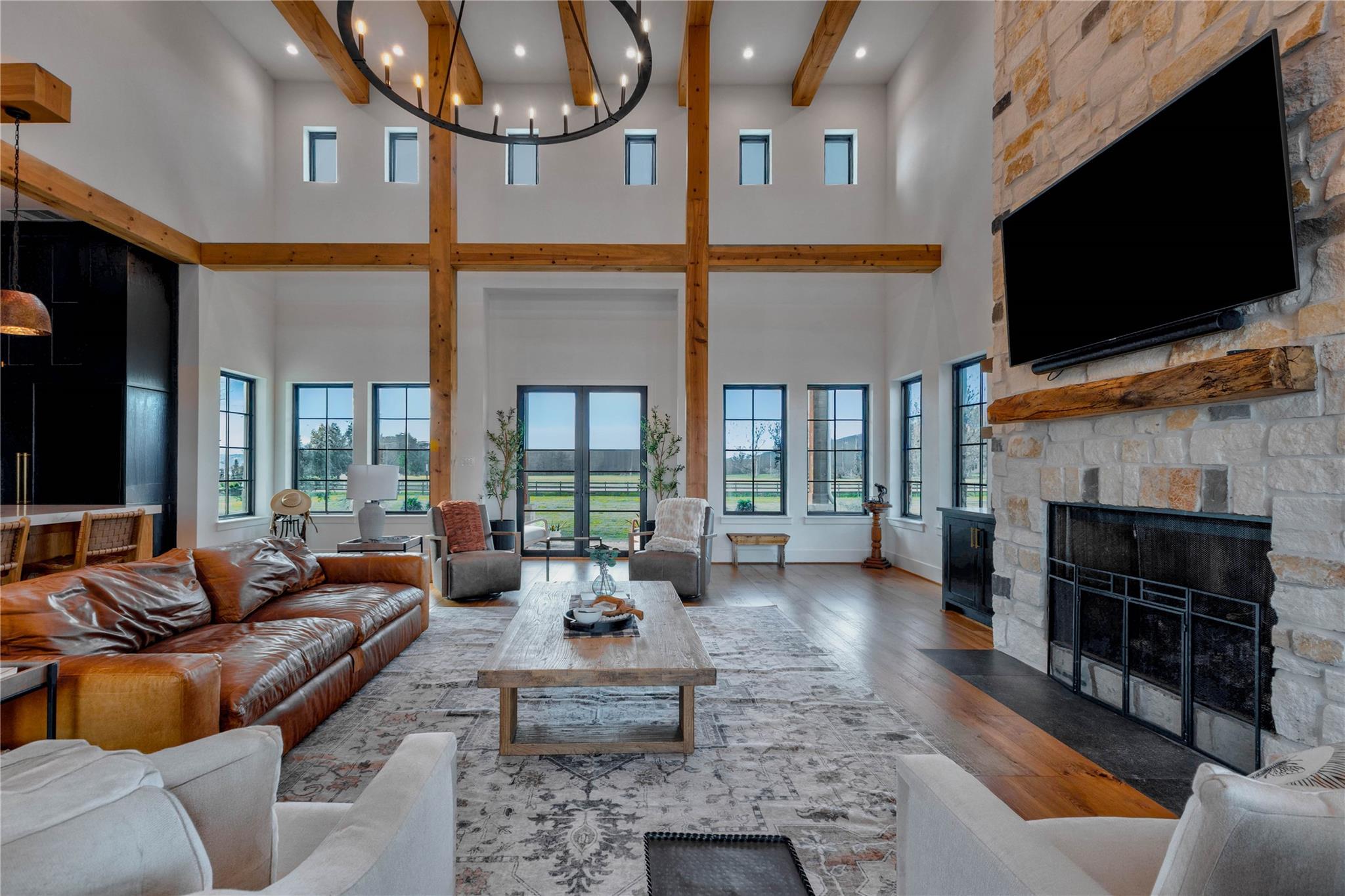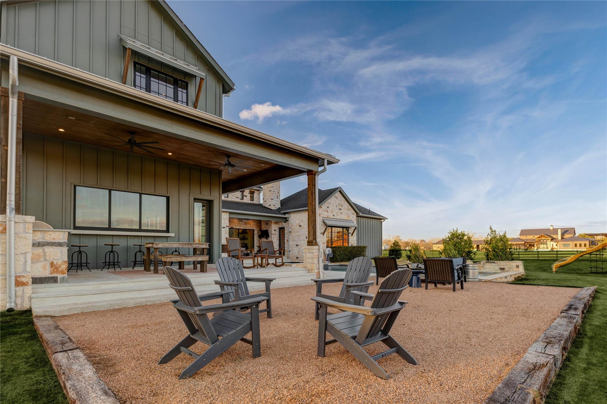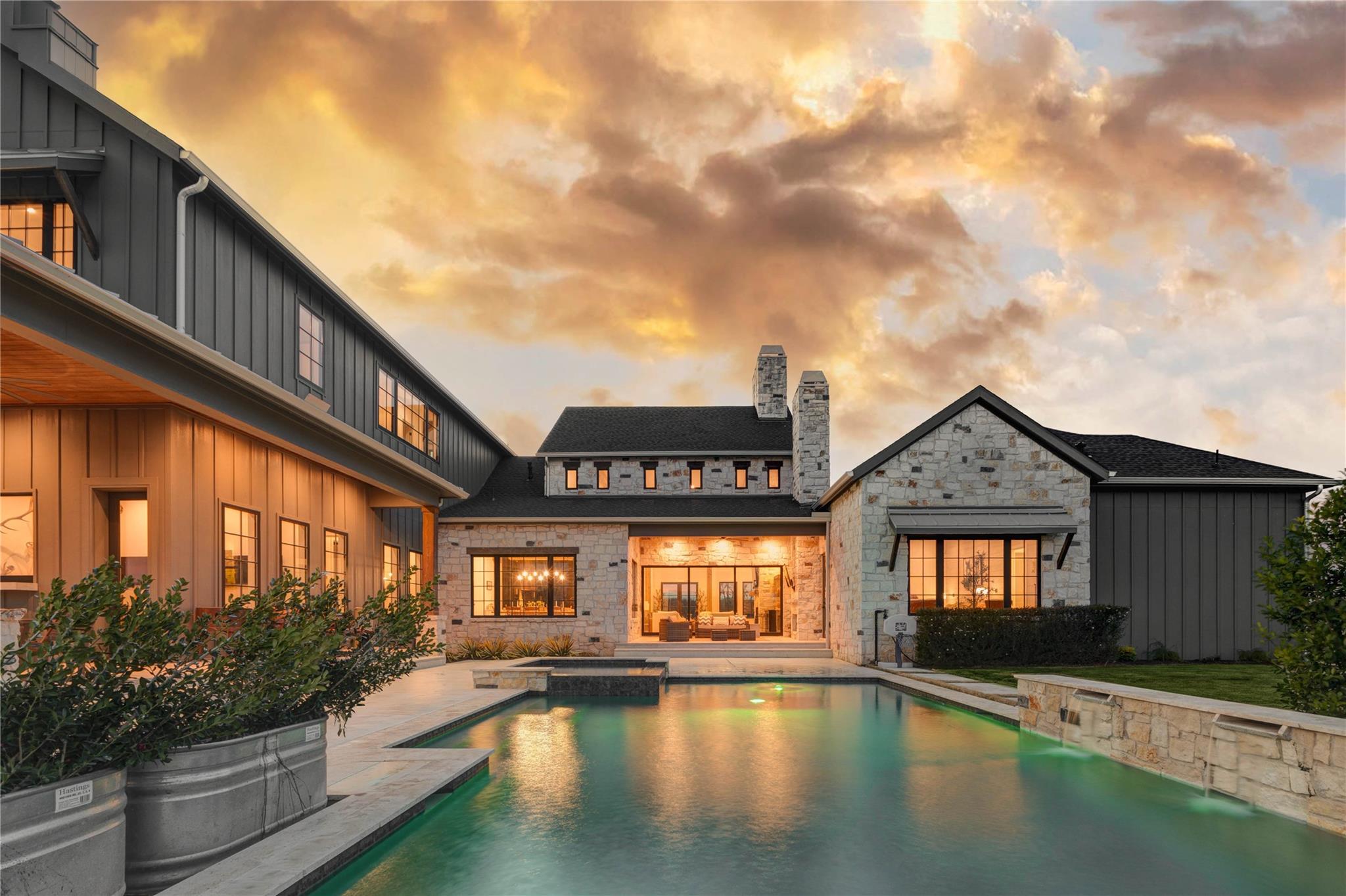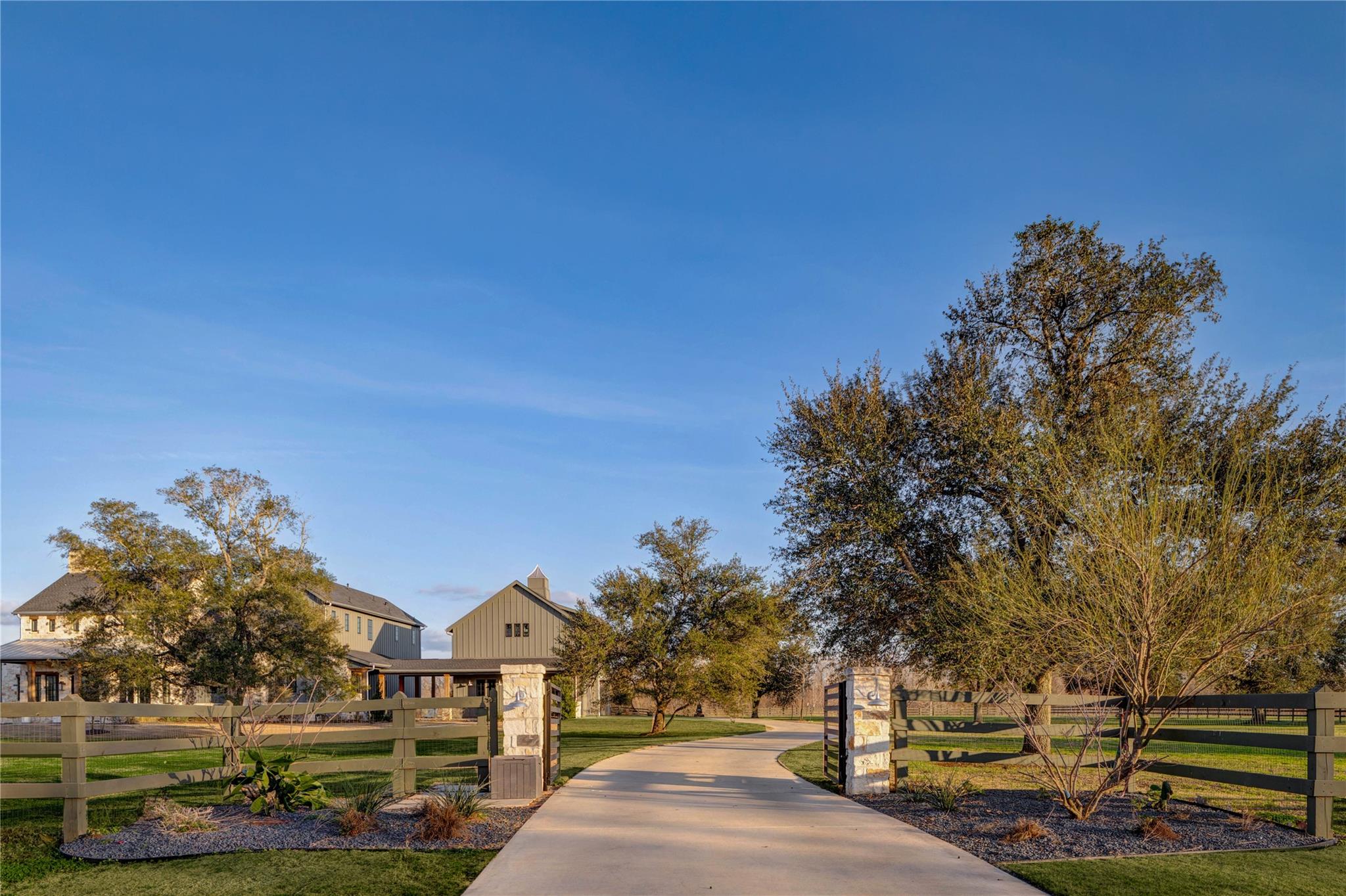 Experience riverside luxury in this Fairmont Custom Home estate on 5.7 acres in Fulshear’s Fulbrook neighborhood. This 4,996 sq ft Modern Farmhouse connects seamlessly w/the Brazos River. Quality begins at the electric gate w/copper gas lanterns & Hill Country stone accents carried indoors. European Oak floors flow throughout (no carpet) & designer lighting illuminates every room.The chef’s kitchen features custom White Oak cabinets & a 48” ILVE dual-fuel range. There is a spacious yet discrete prep kitchen, entered via 8ft antique Italian church doors, includes double ovens, ice maker & bev fridge.The primary suite offers a spa retreat w/a stone-walled tub.Practical perks include a 4-car garage w/dog wash & AC dog room. Outside, enjoy a heated pool w/waterfalls, spa & private river access via a rear double gate.Features a built-in LP grill, wine center & 1,200 sq ft unfinished space above the garage for a guest suite. This luxurious yet quaint property.7